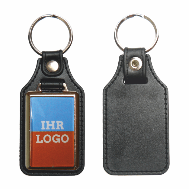 Der Schlüsselanhänger-Rohling MPS-127 auf Kunstleder in schwarz eignet sich hervorragend für Textbotschaften, Fotos oder rechteckige Logos. In der Automobilbranche ist diese Ausführung sehr beliebt. Besonders die mänliche Kundschaft schätzt diesen hochwertigen Schlüsselanhänger als langlebiges Werbegeschenk.